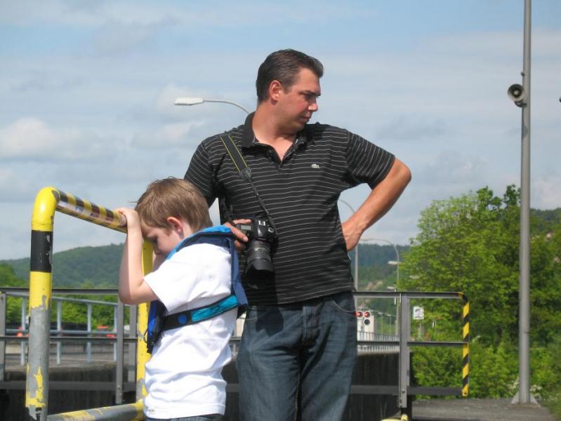 Also Tor wieder auf und rückwärts aus der Schleuse raus.... Dann hat Rico ihn am Ufer entdeckt (daumen)(daumen), der Schleusenmeister... |