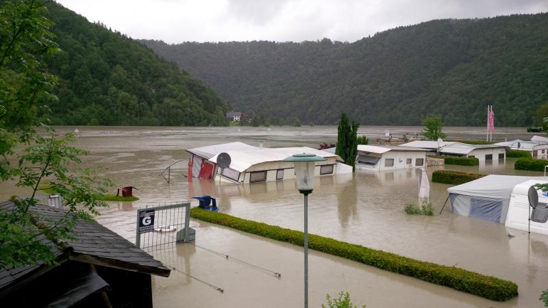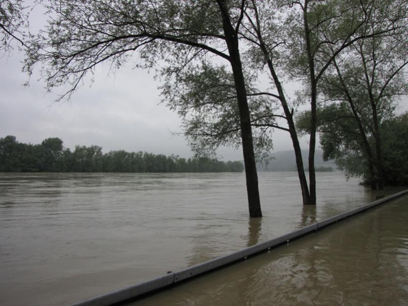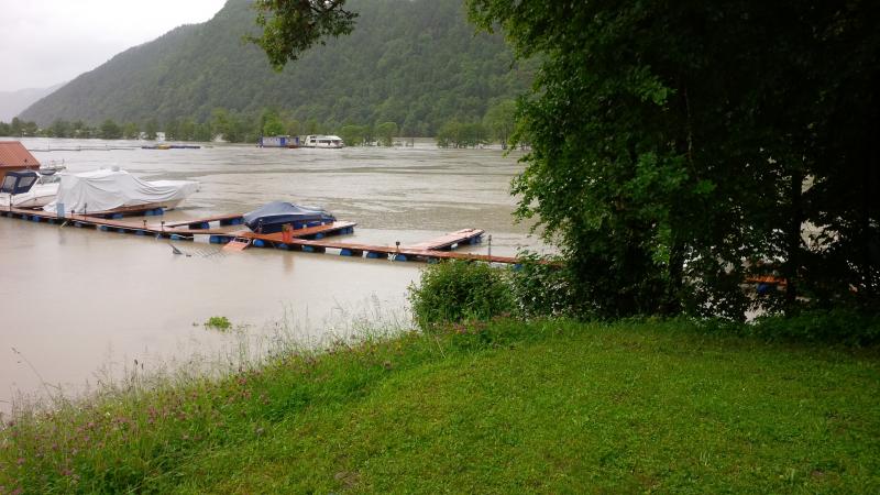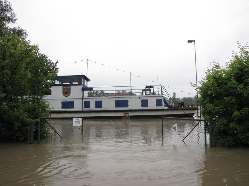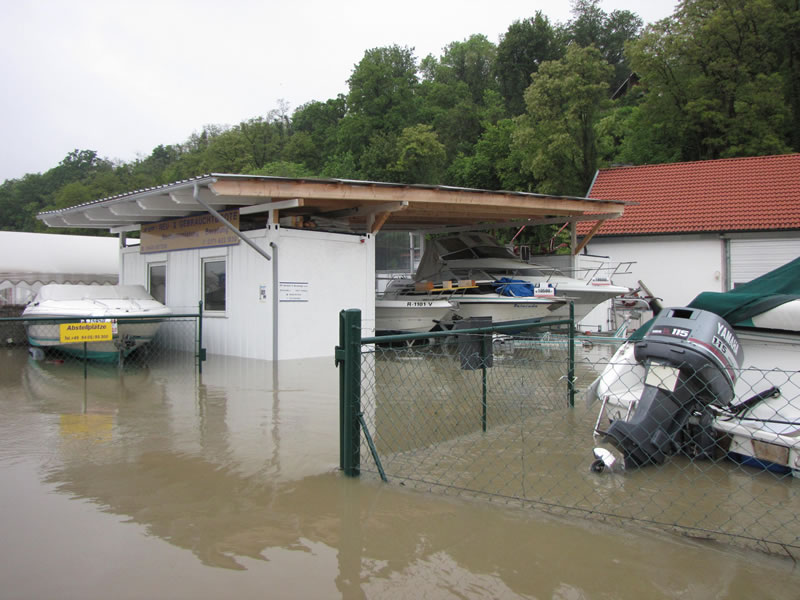 In Schlögen steigt das Wasser stetig. War heute, nachdem ich gestern Abend mein Boot rausgenommen habe, auch tagsüber drüben. Am Foto der ASKÖ Steganlage sieht man recht gut, wie viel das Wasser von Sonntag ca. 17:00 (Foto meines vorangegangenen Beitrags) bis Montag ca. 14:00 (dieses Foto) gestiegen ist. Zum Vergleich hab ich auch ein Foto mit Normalwasserstand April 2013 beigegeben - als wir gerade die Holzbeplankung neu gemacht haben. Die Steganlage der Marina hält sich nach meinem Informationsstand recht gut. Habe von keinen Problemen gehört. Der Campingplatz hat leider seine ersten "Opfer" in Form vollgelaufener oder aufschwimmender Wohnwägen zu beklagen. War heute um ca. 21:00 noch mal vor Ort. Der Wasserstand hat leider erneut zugelegt und nun die zweite Ebene der Campingterrasse erreicht. Der eine oder andere Wohnwagen der darunterliegenden Ebene braucht wohl nimma gar so viel um sich in die Donau zu verabschieden - sofern sie nicht an der überspülten Hecke oder sonstwo hängen bleiben.