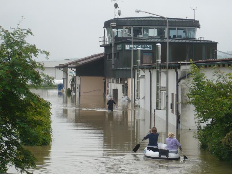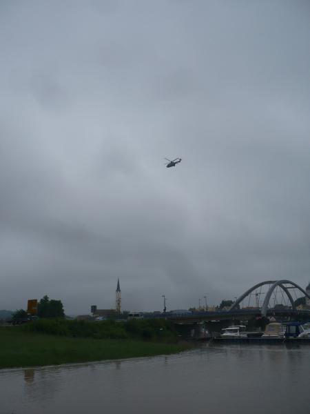 Hochwassertouristin A. Merkel über Vilshofen (ob die auch Sandsäcke schleppen will???)