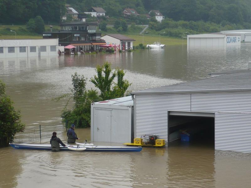 Der Ruderclub hat das Leerpumpen der Bootshalle verloren und bringt die Boote in Sicherheit