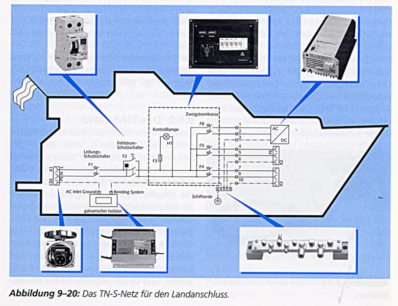 1.) Das Problem liegt IMMER beim Landanschluß. Noch nicht einmal in unseren Gefilden kannst Du sicher sein, dass im CEE der 0-Leiter auch da ist, wo er hin gehört. 2.) Wenn Du jetzt noch einen Schuko-Adapter verwenden musst, hast Du schon in die Sch... gegriffen. 3.) Ohne Trenntrafo brauchst Du für jeden 230V-Verbraucher an Bord eine zweipolige Abschaltung (auch zweipolige Sicherungsautomaten!!!) und eine (relativ) teure Galvanische Trennung des Erdleiters (die aber leider auch zu einem geringen Potentialunterschied zwischen Landerde und Bootsnull führt und damit eine Galvanische Korrosion erzeugt). 4.) Der Trenntrafo IST eine galvanische Trennung und damit ist das Problem des Rückstromes über das Wasser (Galvanische Korrosion) und des 0-Leiters ausgeschaltet. Es gibt keine Land-Erdleitung mehr, mit dem Erfolg, dass kein Potential mehr zwischen dem Wasser und z.B. Propeller, Welle, Antrieb oder Anker aufgebaut werden kann. 5.) Du brauchst an Bord keinen FI mehr, (die Leitungswege sind ja nicht so lang, dass da ein hohes Strompotential zwischen 0-Leiter und Boots-Erde (Masse, 0) aufgebaut werden kann (ein Schaden oder Schluss zu einem Metallgehäuse wird die SICHERUNG sofort auslösen) aber es ist besser. Wobei natürlich ein FI auf Landanschlussseite (Betreiber) Pflicht sein sollte  , aber auch hier zu Lande nicht immer vorhanden ist. 6.) Du hast mit dem Trenntrafo ein eigenen 0-Leiter, der dann auch auf Bord 0 gelegt wird, die Landerde wird nirgens angeschlossen, sie ist nicht mehr notwendig. Siehe auch die beiden Bildchen, aus dem Buch "Theorie und Praxis der Bordelektrik" von Jens Feddern. Auf dem Bild mit Trenntrafo ist noch eine "Anlaufstrombegrenzung" eingezeichnet. Die ist sehr empfehlenswert für schwache oder schnelle Sicherungen beim Landanschluß. Kostet aber nicht die Welt und ist bei vielen Trenntrafos bereits fest eingebaut. Viel Erfolg! (mit Trenntrafo  ) |