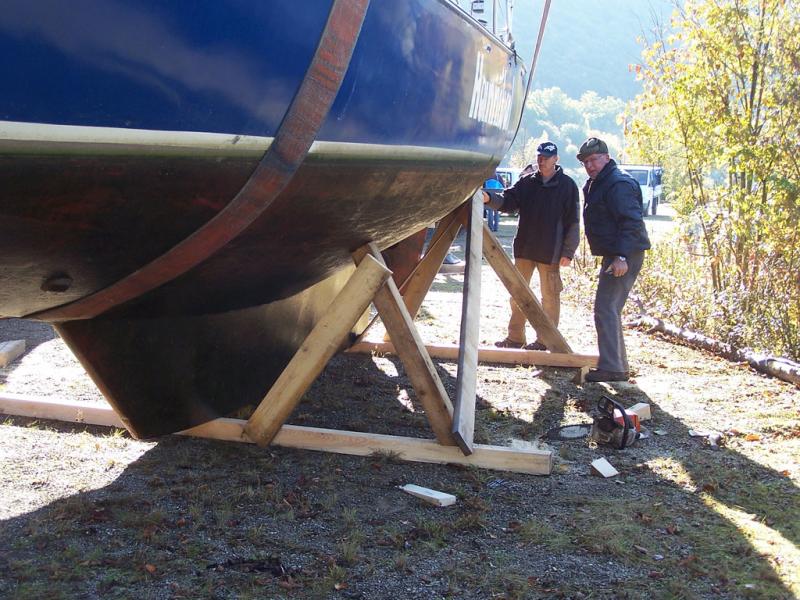 Mittlerweile war auch Oli eingetroffen und auch Tom hat den weiten Weg von Augsburg nach Haidhof gefunden (leicht zu erkennen: der mit den besonderen Taschen - Hände sind schon drin  ).Nach der Palmyra ging es mit der SIAN vom Sigi weiter. Die kam auf ihren Trailer, keine große Aufgabe für unseren Kranführer, der seine Sache sehr professionell erledigte. Kein hin- und her, sondern ganz ruhig und gelassen. Super Job! ![]() ![]() Jetzt geht es dem Hannibal an den Kiel. Hier war noch etwas Besonderes: Da ja Hannibal nicht wirklich das Gleichgewicht auf dem schmalen Kiel halten konnte, musste hier noch eine Zimmermannscrew die Arbeit aufnehmen.....   Übrigens: Auf allen Booten Rauhreif!!!! Und das nicht zu knapp. Auf der Hannibal z.B. auf dem Vorschiff ca. 10mm Eis. Ganz schön glatt.Die nächsten 10  |