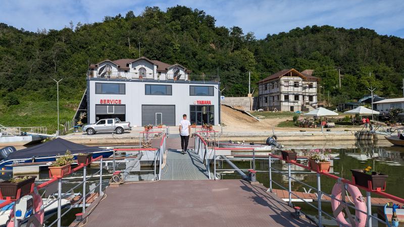 Der Besitzer der Pension und des Hafens, der selber mit einem Boot Touristen in die Schlucht bringt, hat uns auch Auskunft geben können, ob die serbische oder rumänische Seite die Schleusung durchführt.