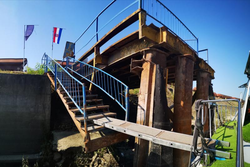 Zuerst in Ungarn oder Serbien ausklarieren (wie im Donau Führer beschrieben). Dann VOR Osijek, bei Drava km 12.3, in den Frachthafen (alter Donauarm) einfahren. Beim ersten und einzigen Dalben (Anliegestelle oder sowas ähnliches) festmachen (wenn noch nicht ganz verrostet). Mit akrobatischem Geschick die Leiter bezwingen, über Geleise bzw Güterwagen klettern, denn das Zoll- und Polizeigebäude ist dahinter. Dann beim freundlichen Polizisten anmelden. Wenn Du wieder ohne den Hals zu brechen auf Dein Boot kommst, hast Du es fast schon geschafft!