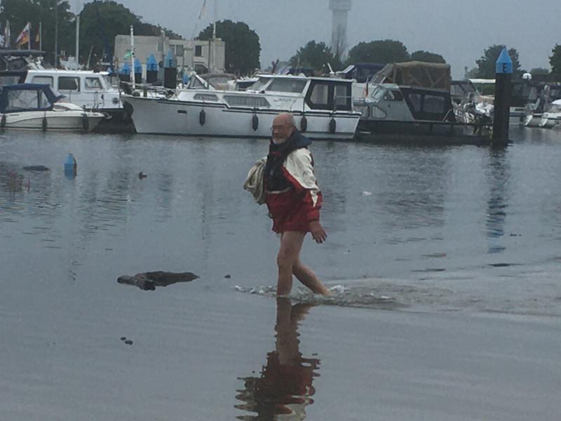 Heute Morgen 08:30 h kam ein Hilferuf eines Freundes, der bei Roermond / NL Boote verkauft. Der Anruf kam aus Österreich… „Könntest Du mal nach den Booten sehen - soll Hochwasser kommen…“ Gut, wir hatten - außer unserer Tasse Kaffee - gerade nichts auf dem Plan. 25 Minuten später waren wir am Verkaufssteiger und es bot sich uns schon ein schockierender Anblick: Hochwasserbedingt waren alle Leinen zu kurz und alle Boote hingen auf halb Acht…! Der Steg war 50 cm unter Wasser… Die Steganlage ist eine von der „festen“ Sorte, bedeutet: wenn das Wasser steigt, werden die Boote einseitig nach unten gezogen bis sie absaufen, weil der Steg nicht mit aufschwimmt… Hosenbeine hoch gekrempelt und rein ins Vergnügen (die Wassertemperatur war O.K. 😉 : Alle Festmacheleinen mussten verlängert werden, standen aber schon unter gewaltiger Spannung und die Hälfte konnte nur mit Hilfe eines scharfen Messers befreit werden. Am schlimmsten hatte es das Boot ganz vorne rechts erwischt: Da stand schon das Wasser hüfthoch drin… Nach Durchschneiden der Leinen richtete sich das Boot nicht wieder auf… Mit Hilfe der beiden Helfer, die sich spontan eingefunden hatten, ist es uns zwar gelungen, das Boot noch 15 m zurück zu ziehen, aber dann…🙈 🙈 traurig aber wahr: ist es gesunken… Die anderen konnten wir retten und an einem schwimmenden Steg festmachen. Das Wasser war zwischenzeitlich nochmal 50 cm gestiegen und für mich gab es keinen (trockenen ) Weg mehr an Land… „Hose aus“ und hoffen… (hat nicht gereicht: das Wasser ging an der tiefsten Stelle bis zum Bauchnabel…) Das war übrigens das 2. mal, dass ich an der Maas in Unterhose vom Boot ins Wasser musste - beim 1. Mal gab es allerdings Applaus für die gelungene Aktion…👍 Als wir uns dann auf den Heimweg machten kam schon Polizei und Zivilschutz in die Hafenanlage. In 2 Stunden wird das Militär zu Hilfsaktionen erwartet. Nebenbei: Auch der große Campingplatz auf der Landzunge musste geräumt werden. Da gibt es einen erhöhten Parkplatz auf dem die Wohnwagen abgestellt wurden. Dann kam die Nachricht: Es wird so viel Wasser kommen, dass auch da alles Land unter ist - die ganze Arbeit seit gestern rund um die Uhr: für die Katz! Alles muss weg… Nebenbei: da sind auch noch ca 40 oder 50 Boote im Uferbereich, denen das gleiche Schicksal droht wie unserem Unrettbaren… Wieder trockene Grüße aus Wegberg - Rainer & Helga